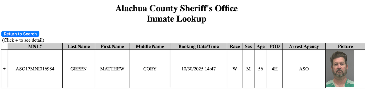 Following Green’s arrest on October 30, the Alachua County Sheriff’s Office published a press release on the case.