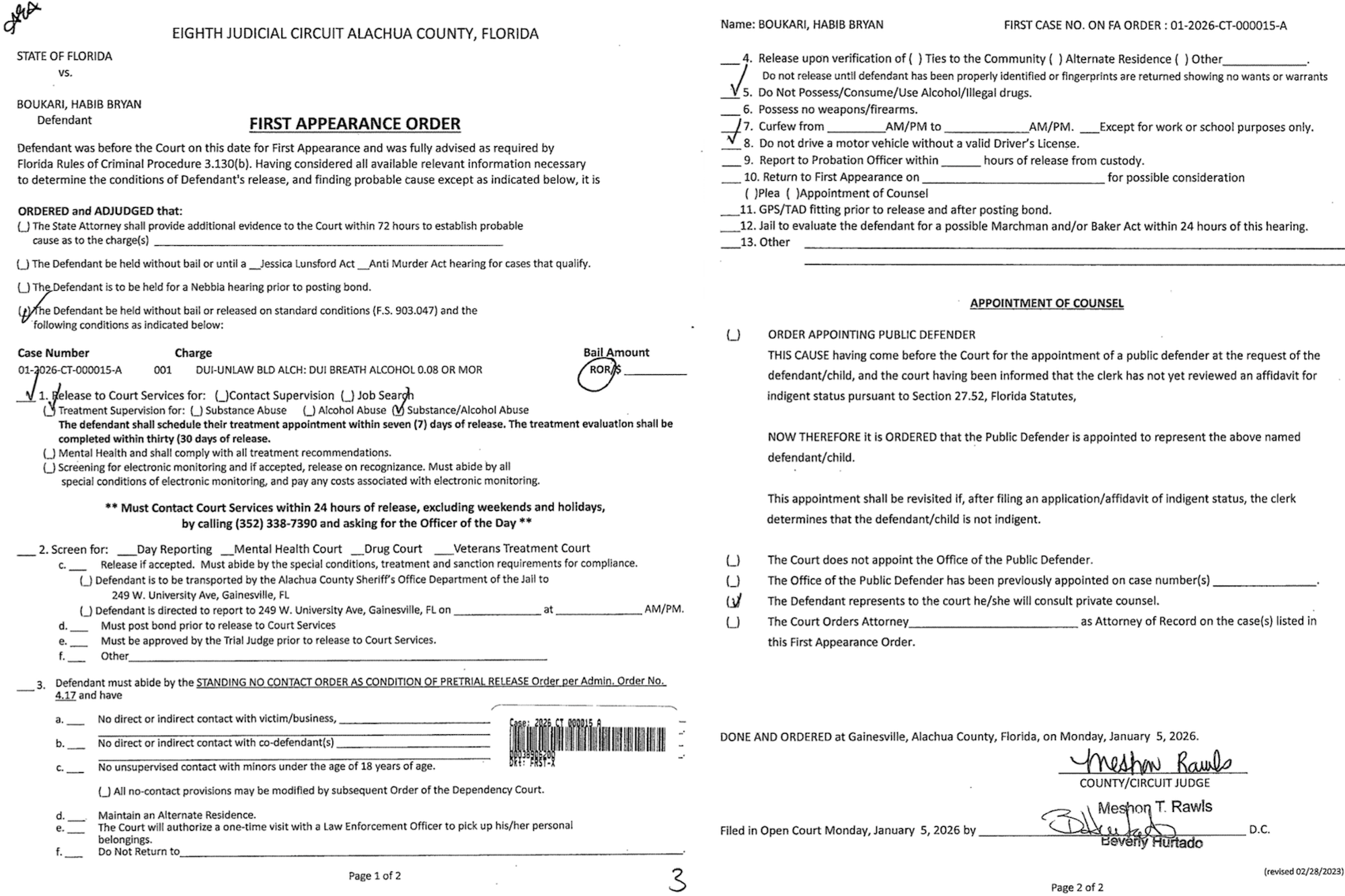 Boukari was released on recognizance under the orders of Judge Meshon Rawls, who placed pretrial release conditions on him to not drive without a license and to not consume drugs or alcohol.