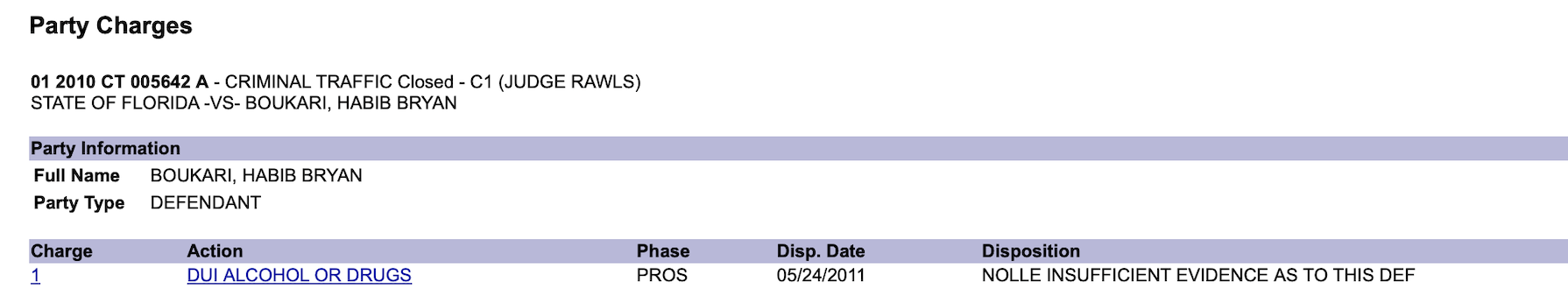 Although his brother now faces jail time for drunk driving, Alachua County court records show no charges have been pressed against Adam Boukari.