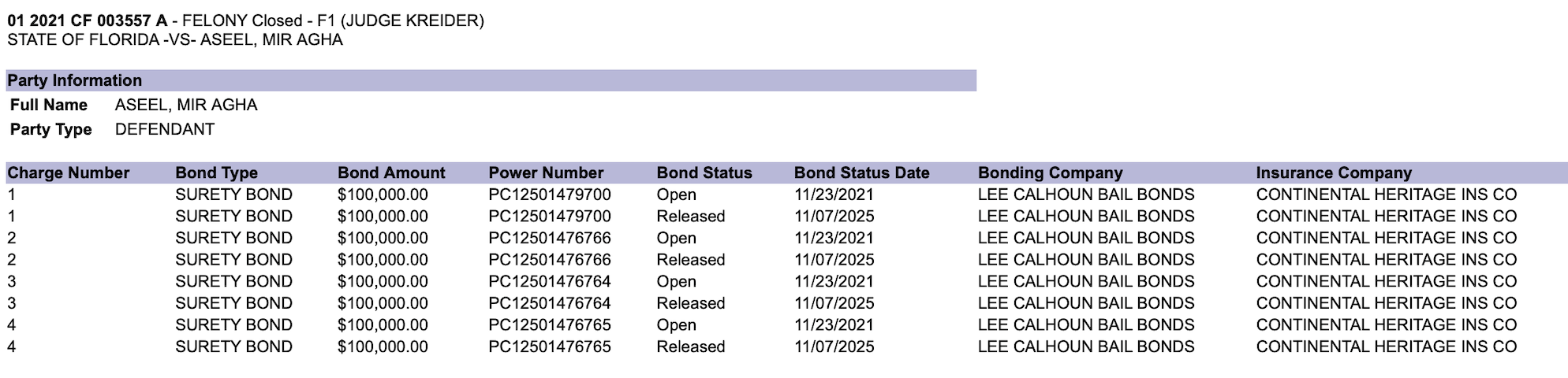 In May 2022, prosecutors with the Eighth Judicial Circuit State Attorney’s Office formally filed charges against Aseel.