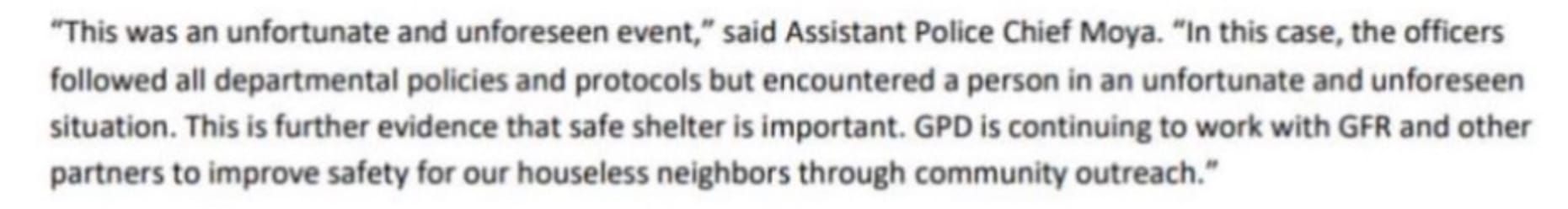 Walsh was not subject to disciplinary action. At the time, assistant chief, now Interim GPD Chief Moya, said the incident was “unfortunate and unforeseen [but that] the officers followed all departmental policies and protocols.”