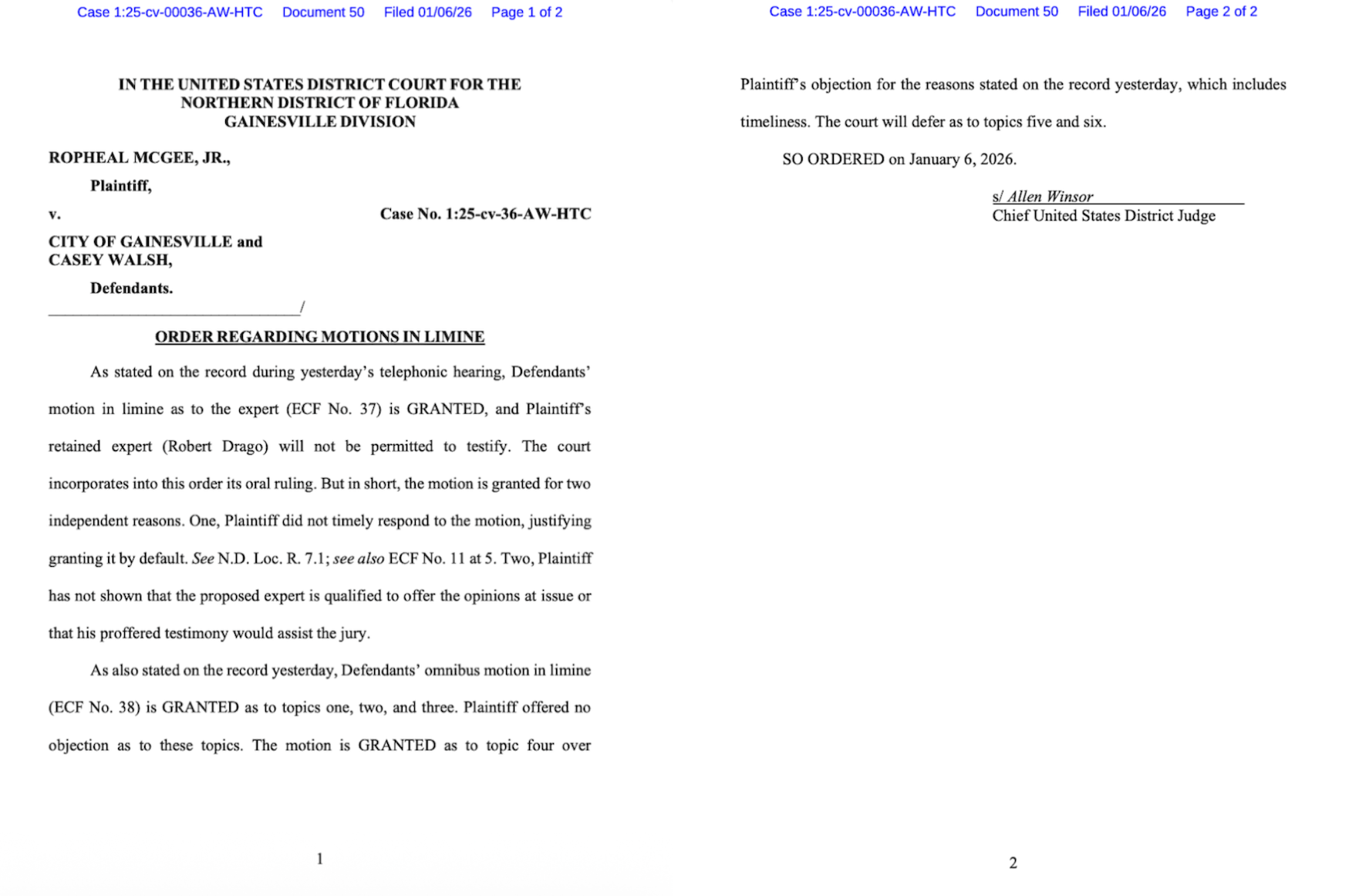 The defendants objected to the use of Drago’s testimony in trial, a move that was accepted by U.S. Florida Northern District Chief Judge Allen Winsor.