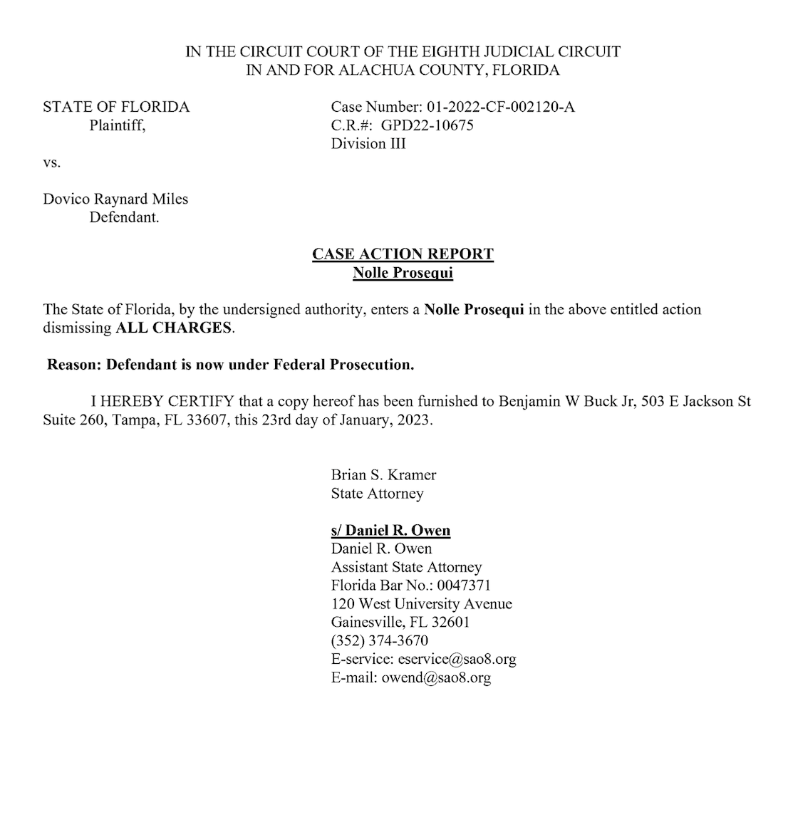 Local prosecutors dropped Miles’ charges after he was placed under federal prosecution.