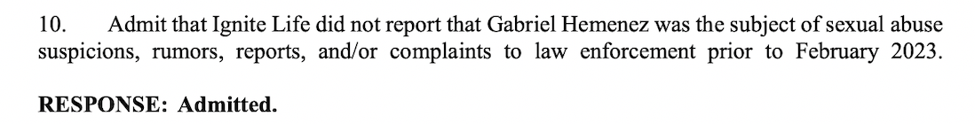 Shortly before the lawsuits were settled, ILC admitted they “did not report that Gabriel Hemenez was the subject of sexual abuse suspicions, rumors, reports, and/or complaints to law enforcement prior to February 2023.”