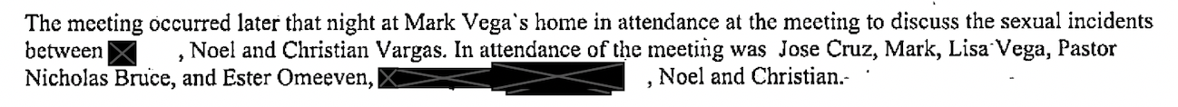 The meeting included Mark Vega, his wife Lisa Vega, the victim, her father, Jose and Noel Cruz, Vargas, and ILC pastors Esther Omeben and Nick Bruce.