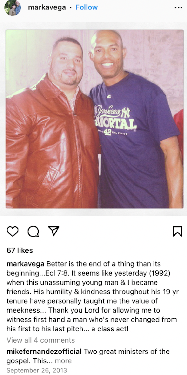 Mark Vega previously served as a chaplain for the Yankees and he has been friends with Rivera since 1992.