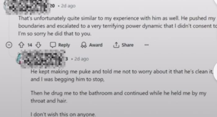 According to social media comments after Rosenthal went missing, he “pushed boundaries and escalated to a very terrifying power dynamic” that was not consensual.