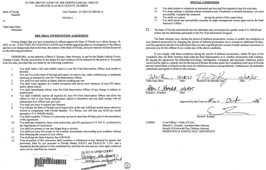 On October 28, Talan Issac Bens, 20, was granted a pretrial diversion for his racially motivated felony case of battery by strangulation.
