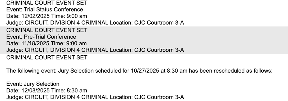 Ward was convicted of second-degree murder, armed burglary and possession of a firearm by a convicted felon. While he was transferred to a FDC facility, he is now back in the Alachua County Jail under court orders. Ward signed a similar truthful testimony corporation agreement as part of his plea deal, court documents show. Ward was transferred from the FDC to the Alachua County Jail on October 19, 2025, the booking log shows.