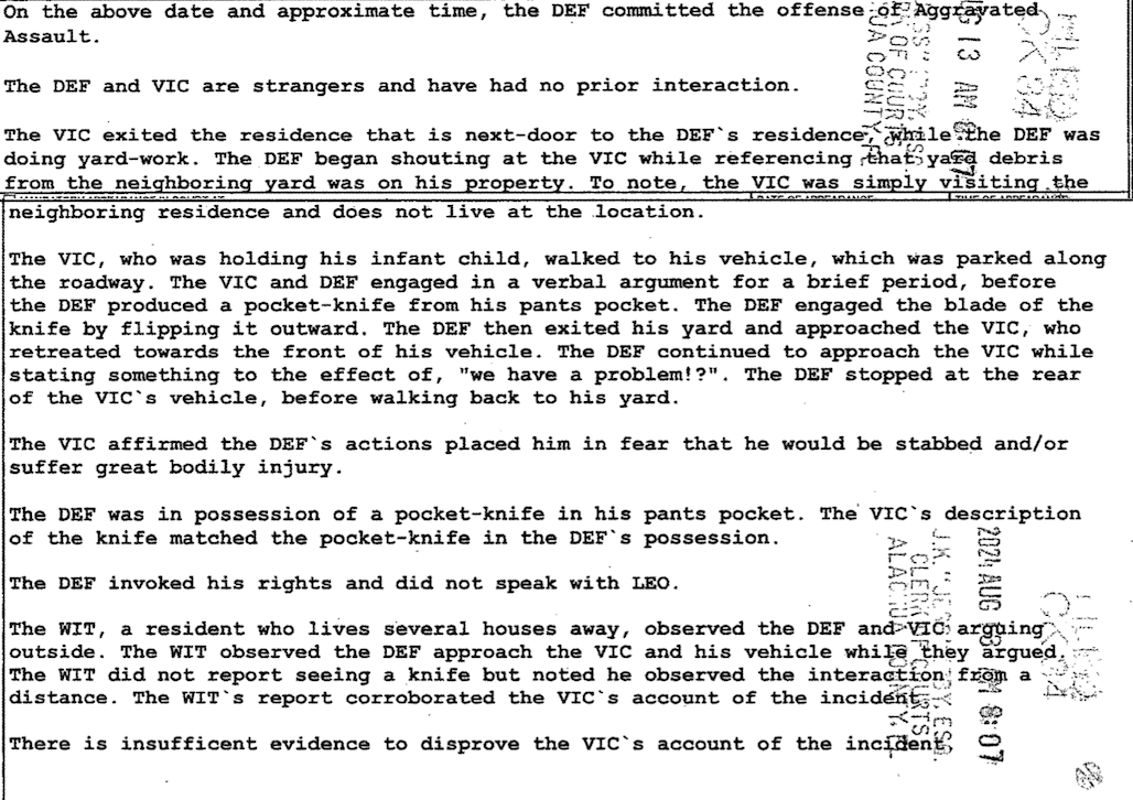 A witness from several houses away corroborated the victim’s account to the Gainesville Police Department.