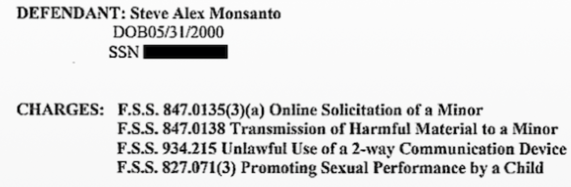 In November 2025, the Tallahassee Police Special Victims Unit initiated an undercover operation focused on identifying criminals using the internet to sexually abuse children, court records show. They began speaking with Monsanto on November 20.