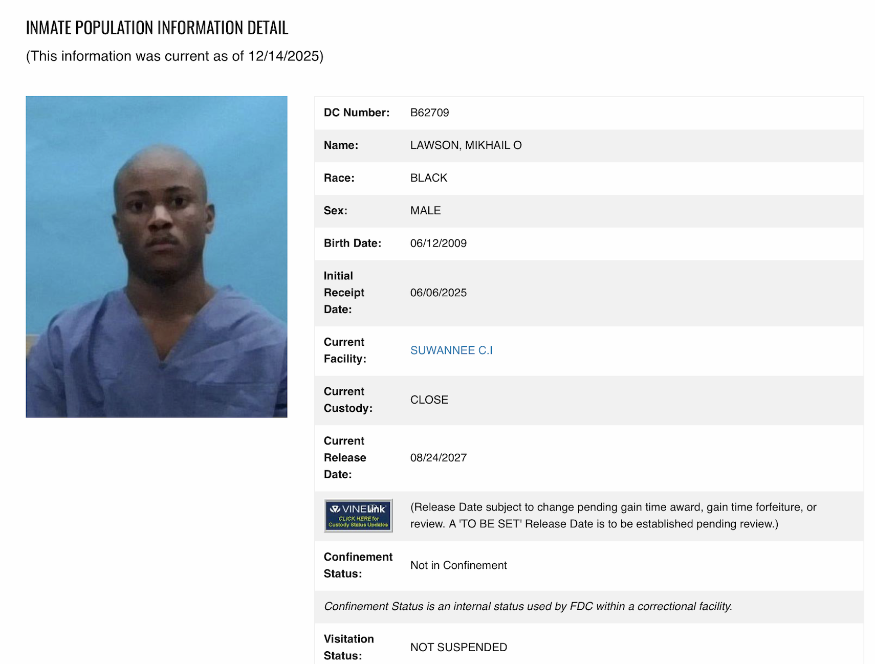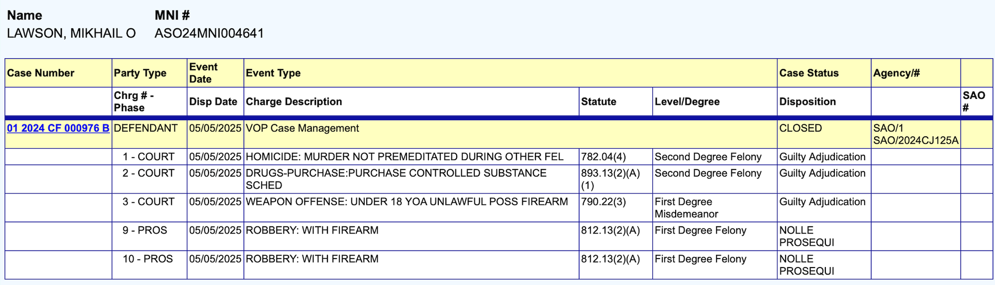 On May 5, 2025, Mikhail Lawson was convicted of homicide among other charges in a plea deal and sentenced to three and a half years in prison.