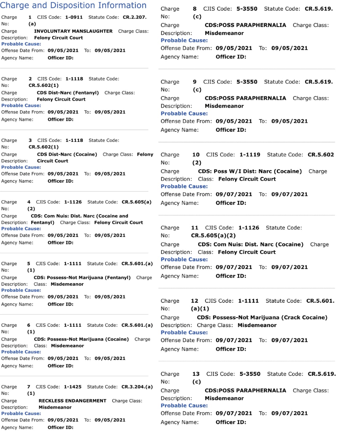 Ford was indicted for involuntary manslaughter on January 26, 2022. He also faces a reckless endangerment charge and nearly a dozen drug charges.
