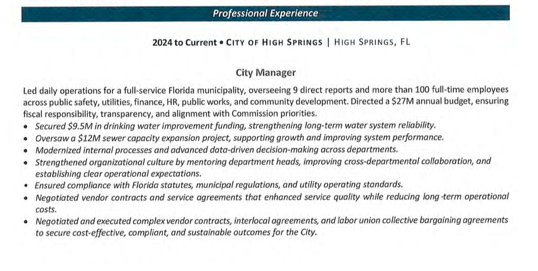 Kytle replaced Thomas Henry, who was the public works director for roughly two years until he was fired by a recently-hired Marshall in April 2024. A few months after his firing, Henry filed a lawsuit against High Springs, with the core allegations being violation of Sunshine law, destruction of evidence, and violations of Florida’s Public Whistleblowers Act. Based on court records, Henry voluntarily dismissed the lawsuit in January 2025.
