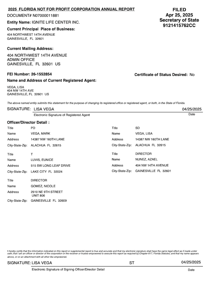 Update | Mar 23, 2026: Despite Azael Nunez's announcement of departure, he still appears affiliated with the Ignite Life Center in the 2025 annual report.