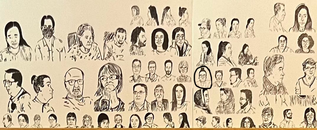 A portion of the art exhibit contains portraits of several local politicians and other prominent members of the community who contributed to the GGIC Refugee Resettlement program, among them ILC pastor Nicole Gomez.