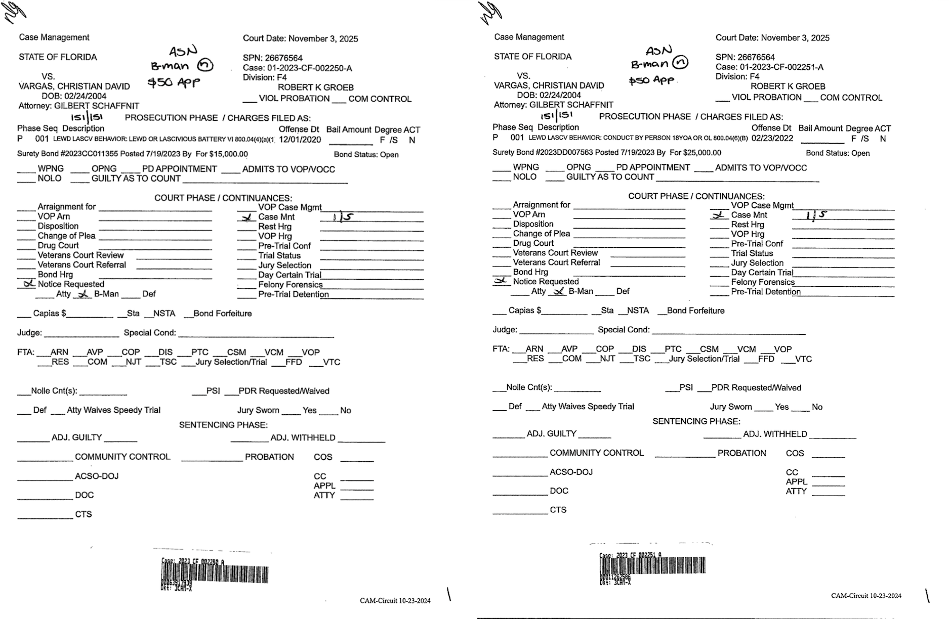 The reason why Vargas' criminal cases have been extended is currently unclear. GnvInfo didn’t make it to Vargas' two most recent case management hearings, and videos haven’t yet been obtained, which can be requested from Alachua County Court Records for a minimum $35 payment per hearing.