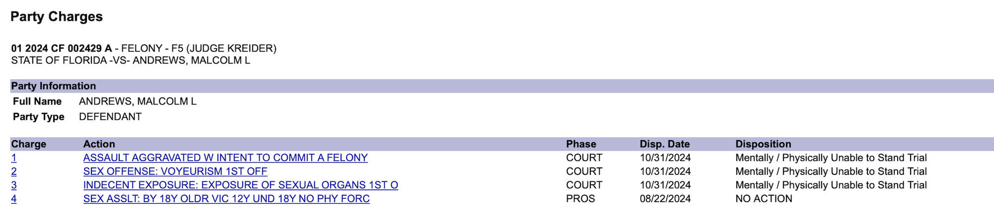 Update | Jan 25, 2026: Malcolm Lynn Andrews' attempted sexual battery charge was dropped and he was deemed mentally unfit to stand trial on other charges he faced stemming from the attack. He has a felony forensics hearing scheduled for April 16, 2026.