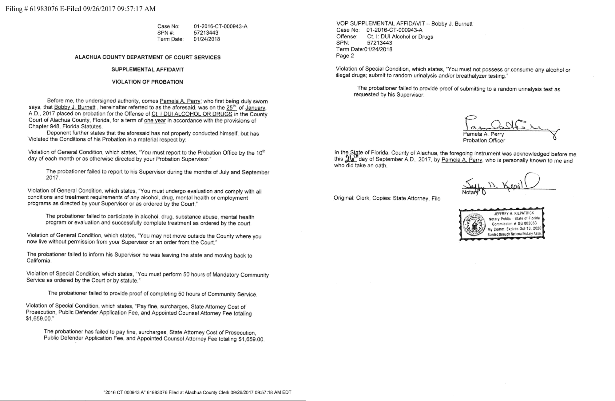 Burnett stacked up several more probation violations because he never paid court costs or checked in with his probation officer, neglecting to inform her that he moved to California.