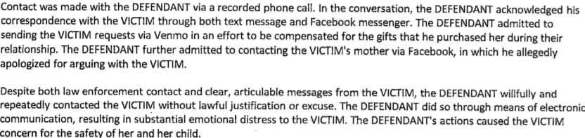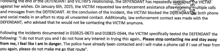 Following the ending of Terrell and the victim’s relationship, he repeatedly contacted her against her wishes.