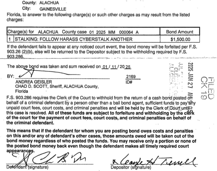 In May, Chase Brandt Terrell, 44, was convicted of two misdemeanor charges, making harassing telephone calls repeatedly and harassing a witness during prosecution. Terrell pleaded no contest in a plea deal that was accepted by Judge Kristine Van Vorst where he was sentenced to 12 months of probation.