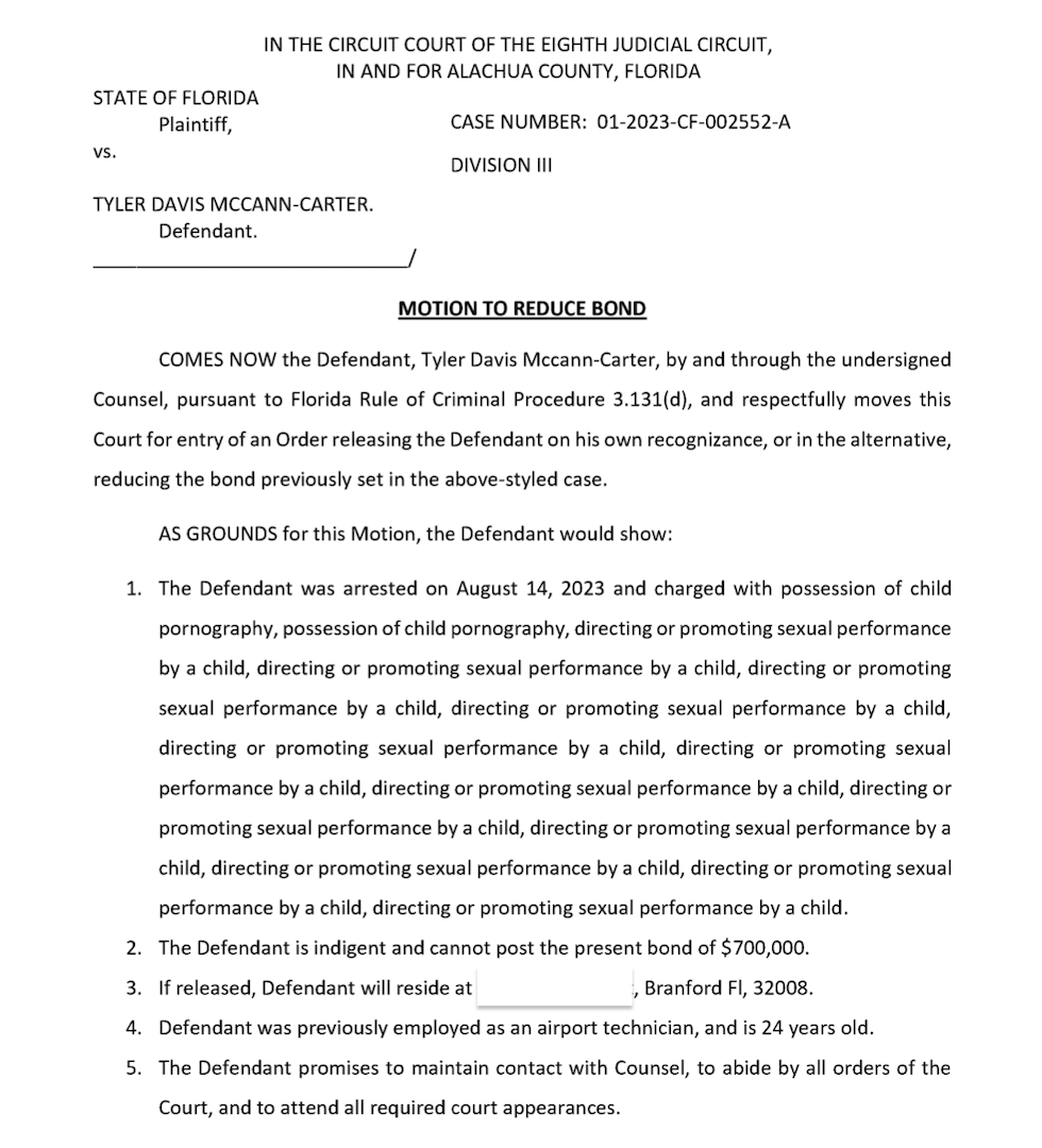 A few weeks after his arrest, McCann-Carter's defense counsel made a bond reduction motion, showing he previously worked as an airport technician.