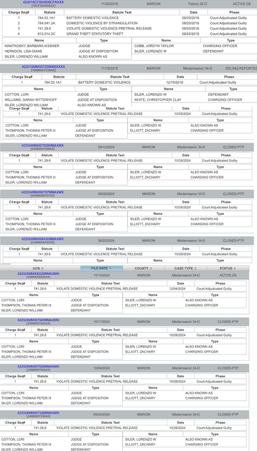 Siler has multiple convictions in Marion County for domestic violence and violating pretrial release conditions.