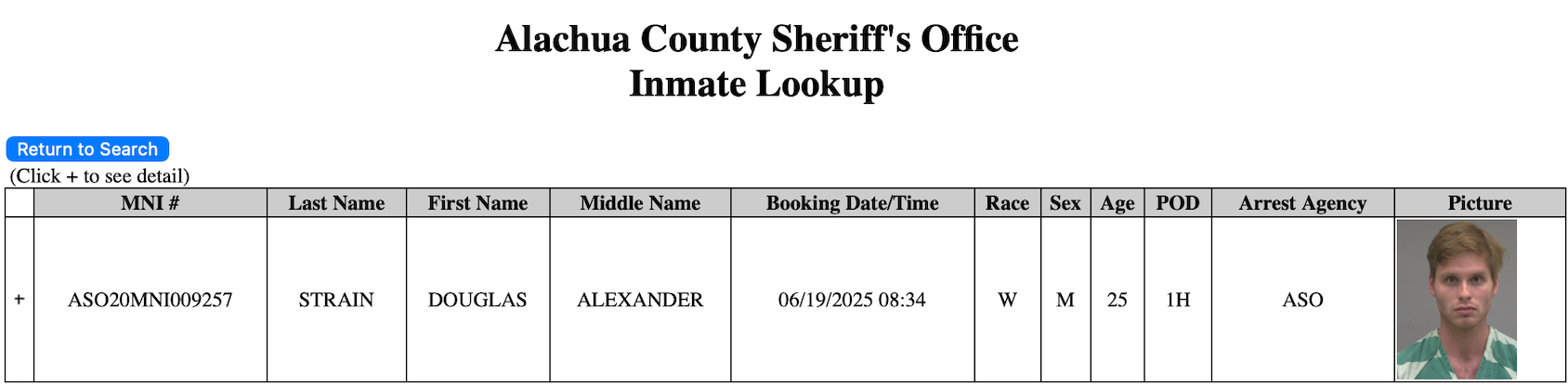 Based on the ACSO Jail Inmate Lookup, Strain is in the Alachua County Jail awaiting transportation to a Florida Department of Corrections (FDC) facility. Strain does not currently appear in the FDC Offender Search.