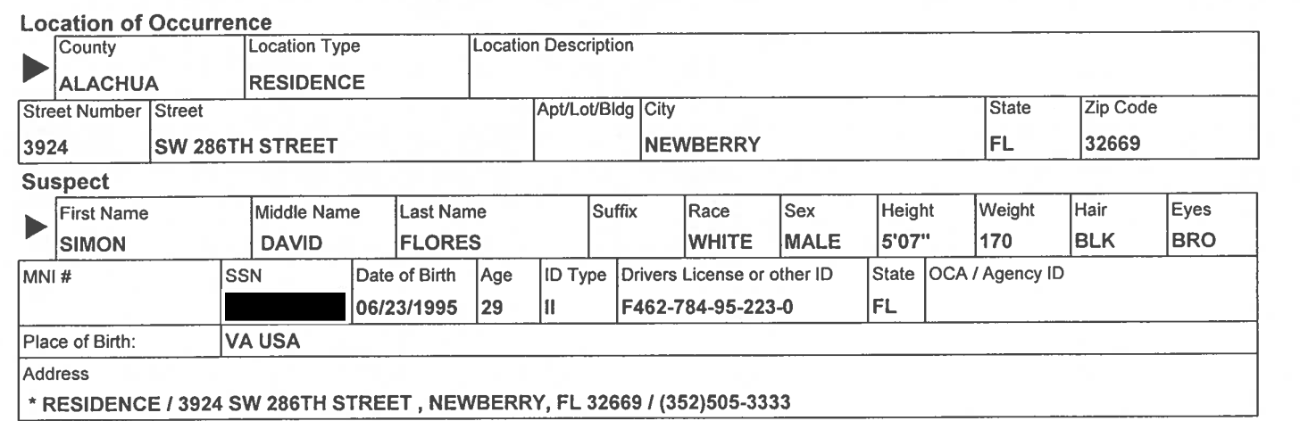 Update | February 14, 2026: Simon Flores' case appears to have been expunged on Alachua County court records and the article was updated to reflect this. More information was added, including when GnvInfo received contact from Flores' family member. Some text was removed and replaced with a copy of the police report.