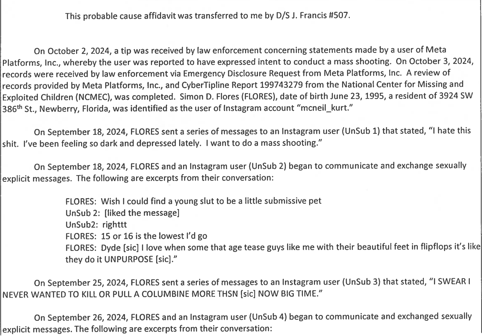 Flores' Instagram username was mcneil_kurt.
