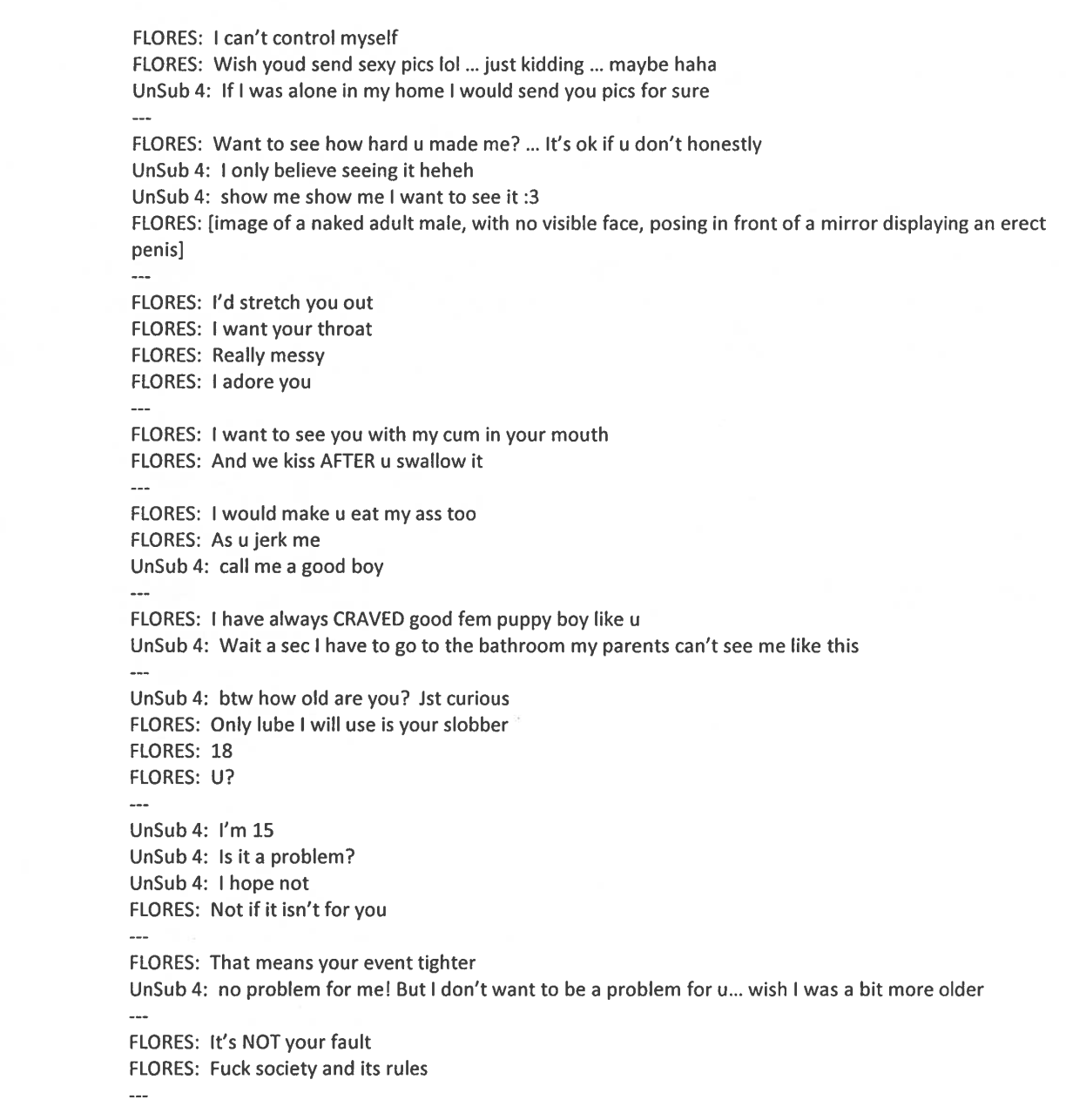 Flores wrote the following statement that was provided by his family member: