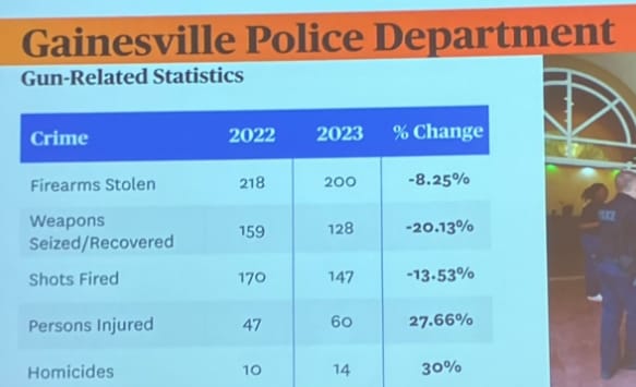 Last July, gun violence was declared a public health crisis in Gainesville. As a response, the Gainesville Police Department (GPD) and Gainesville Fire and Rescue (GFR) developed a gun violence prevention initiative, which they gave an update on yesterday.