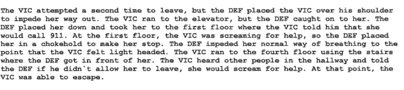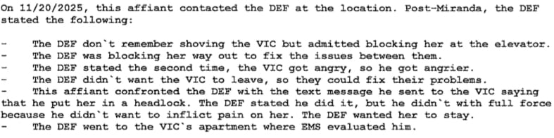 In fear Walkons would harm her further, she went inside his apartment with him. The victim began texting her friend, and Walkons reportedly tried to take her phone, grabbing her by the arms and pushing her around.
