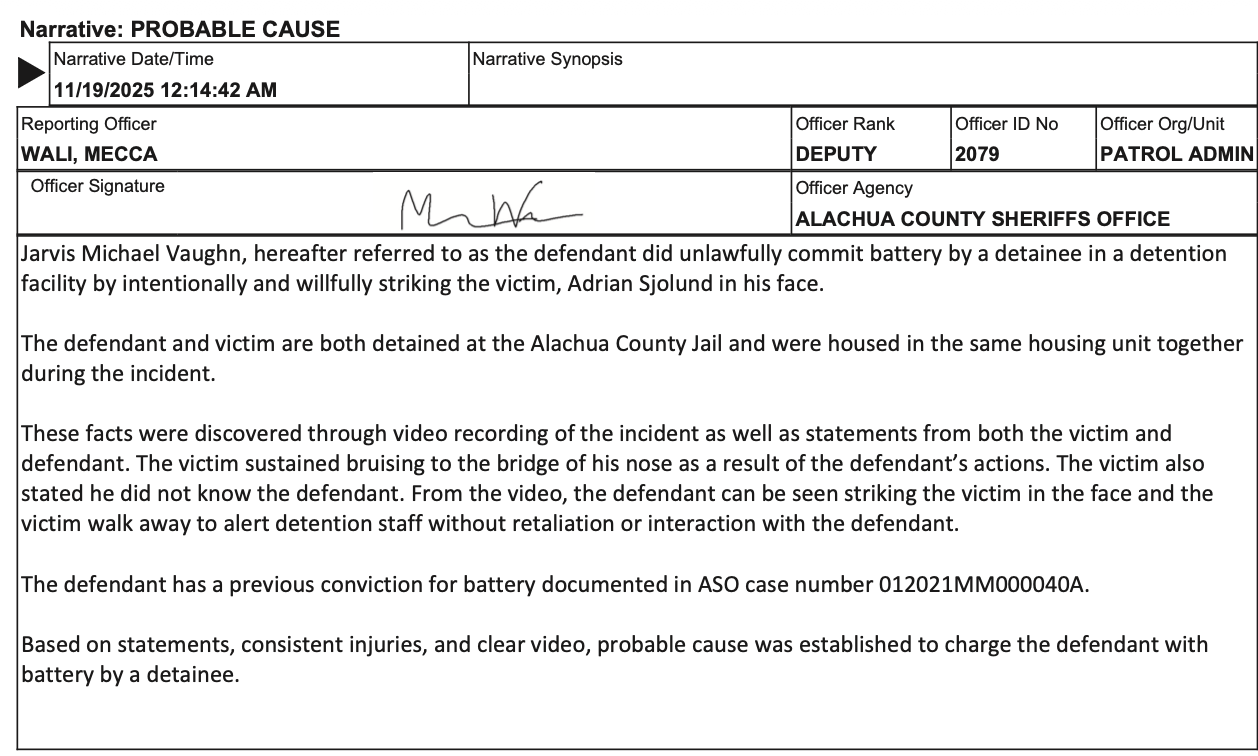 According to an ACSO incident report received in response to a records request for all reports involving Sjolund in their possession, another inmate punched Sjolund in the face the day prior to his release.