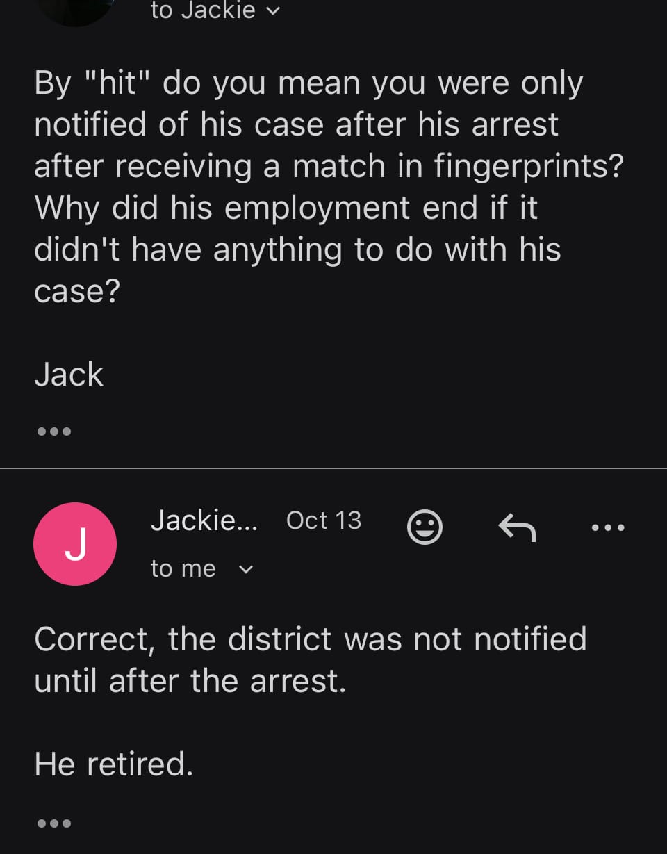 Johnson stated, “The district was not notified about the writing or filing of a sworn complaint... Mr. Nitray's job duties would typically have entailed being on school grounds during the school day. We do not have any record of him volunteering at a school.”