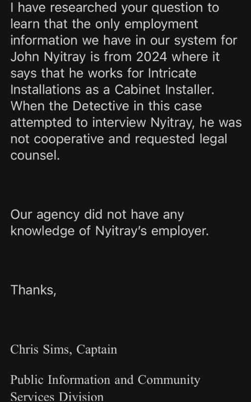 The Incident Occurred in the Home and is Unconnected to John Nyitray’s Former Employment Status.