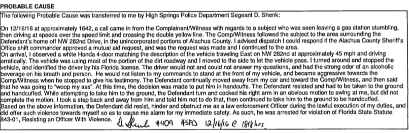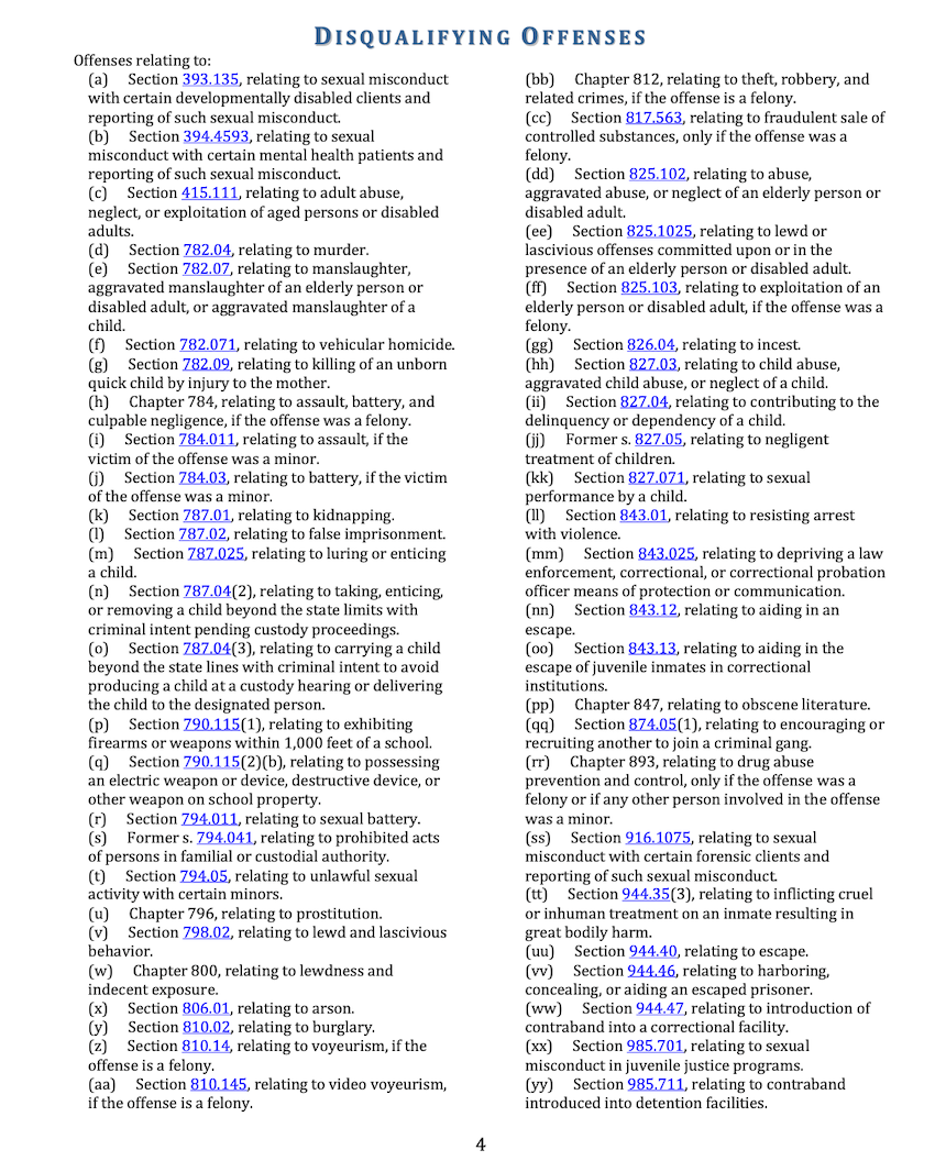 Florida law doesn’t outline resisting arrest without violence as an offense that prohibits adults from working in schools, only resisting arrest with violence.