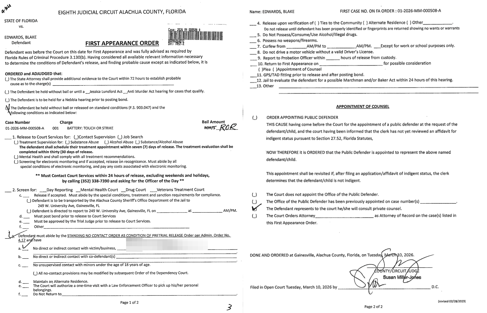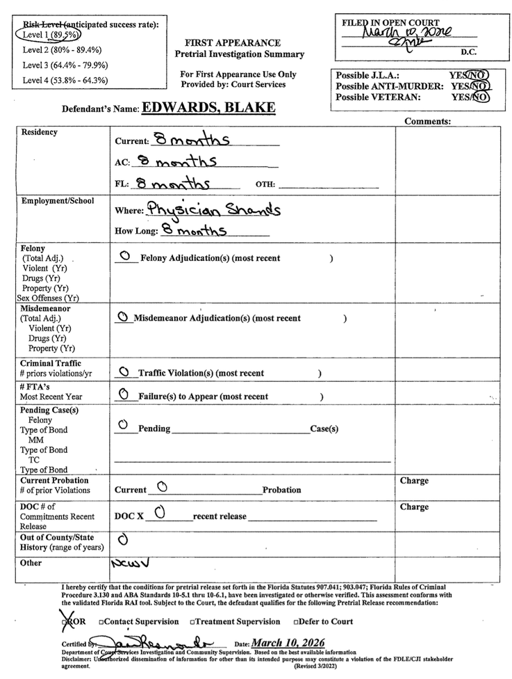Judge Susan Miller-Jones released Edwards on his own recognizance under the conditions that he not contact the victim.