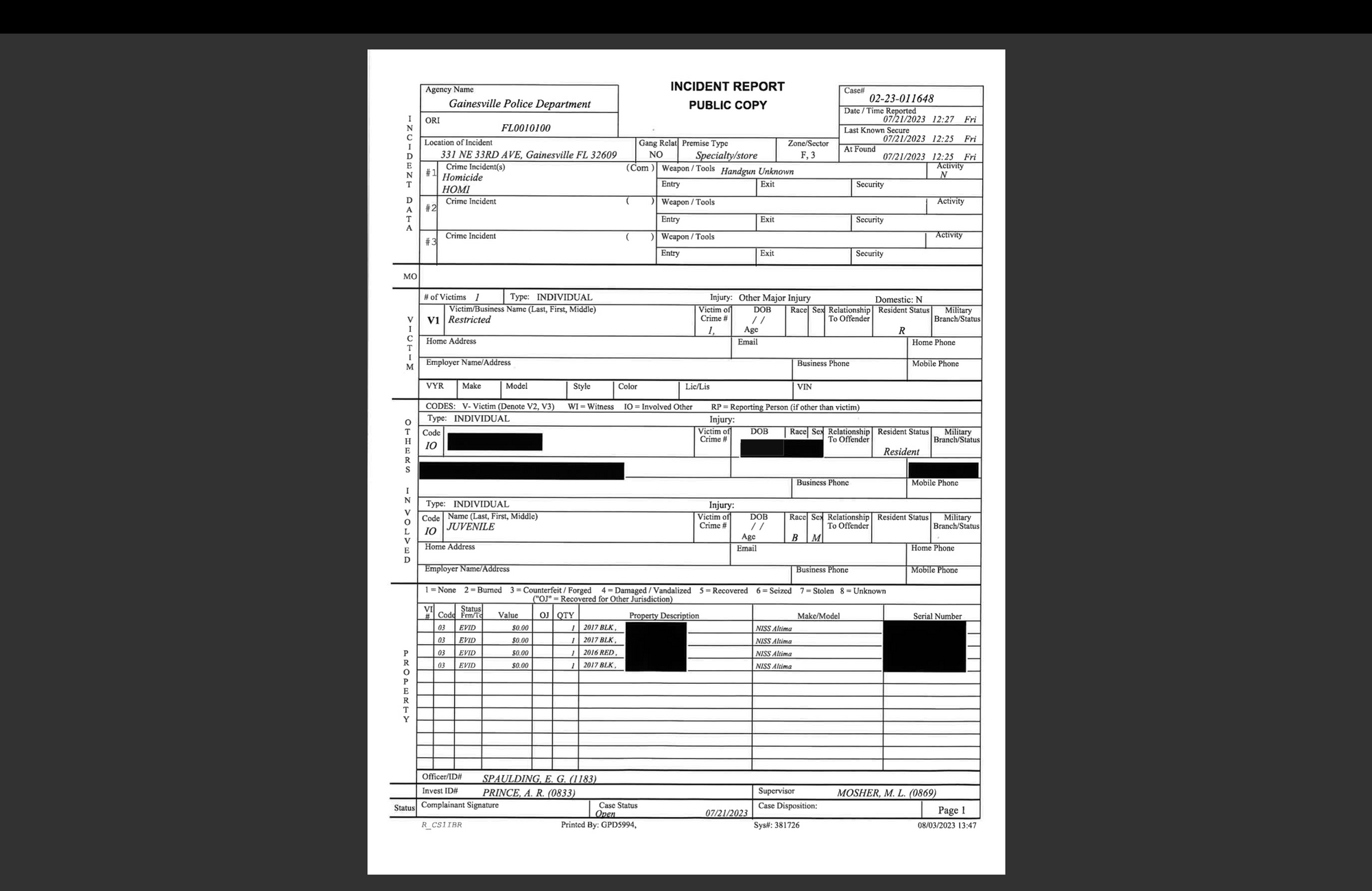Update: On August 3 an incident report on this shooting was retrieved: