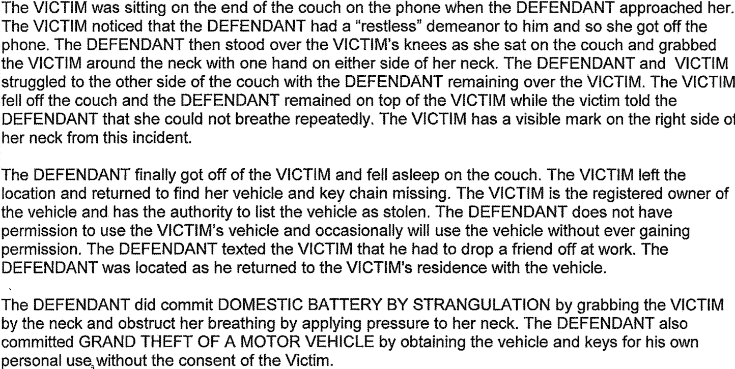 “Snapped;” Man Serving Jail Sentence Following Domestic Battery by Strangulation Conviction