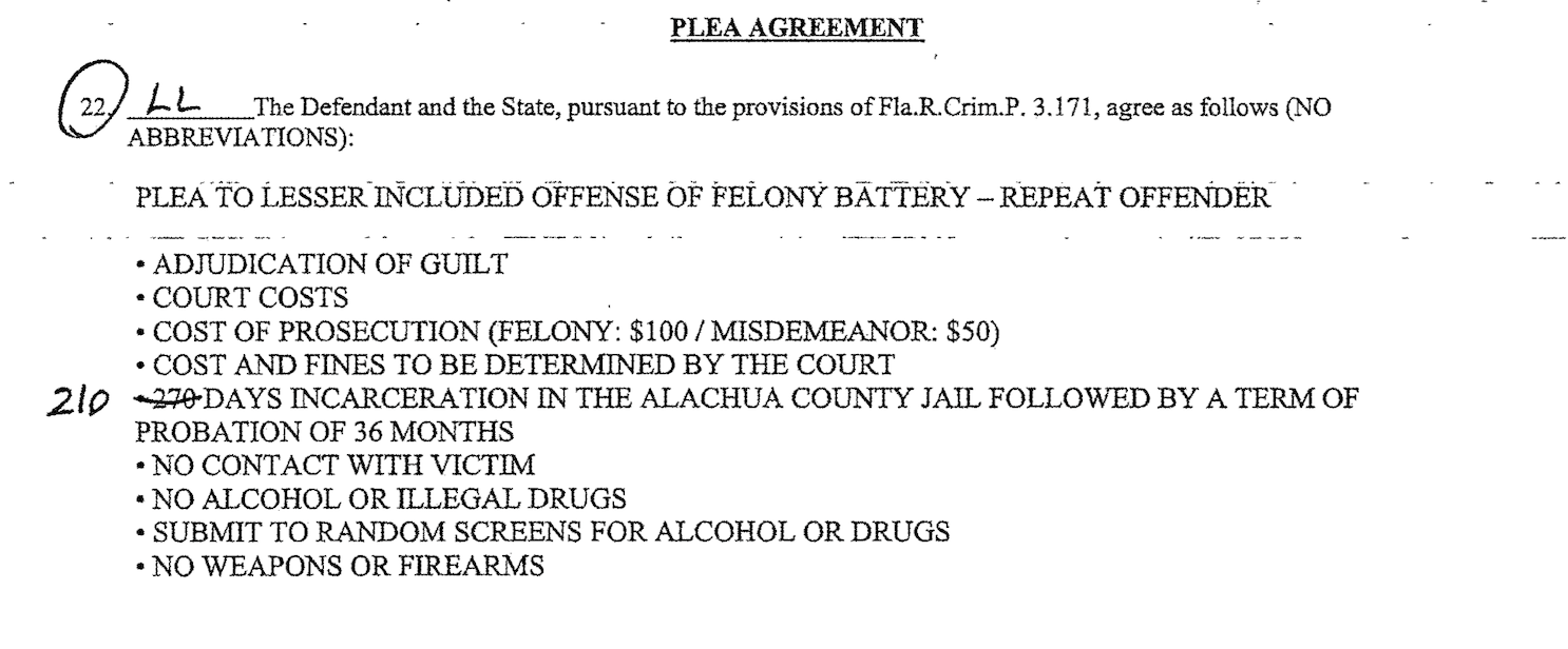 On October 16, L-David Quavoyn Lewis, 30, was sentenced to 210 days in the Alachua County Jail and three years of probation following a no contest plea and conviction for domestic battery by strangulation. With 119 days of credit for time served in jail, Lewis is scheduled to be released in mid-January.