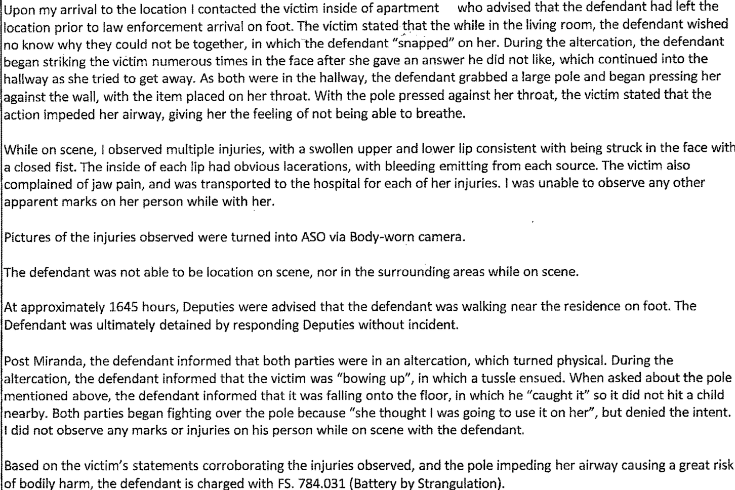 According to the arrest report, in June of this year, Lewis was arguing with the victim, asking her why they couldn’t be in a relationship. The victim told police that Lewis “snapped” on her, striking her numerous times in the face because she gave an answer that he didn’t want to hear. The struggle continued into the hallway, with Lewis grabbing and pressing the victim against the wall with the pole on her neck, obstructing her ability to breathe.