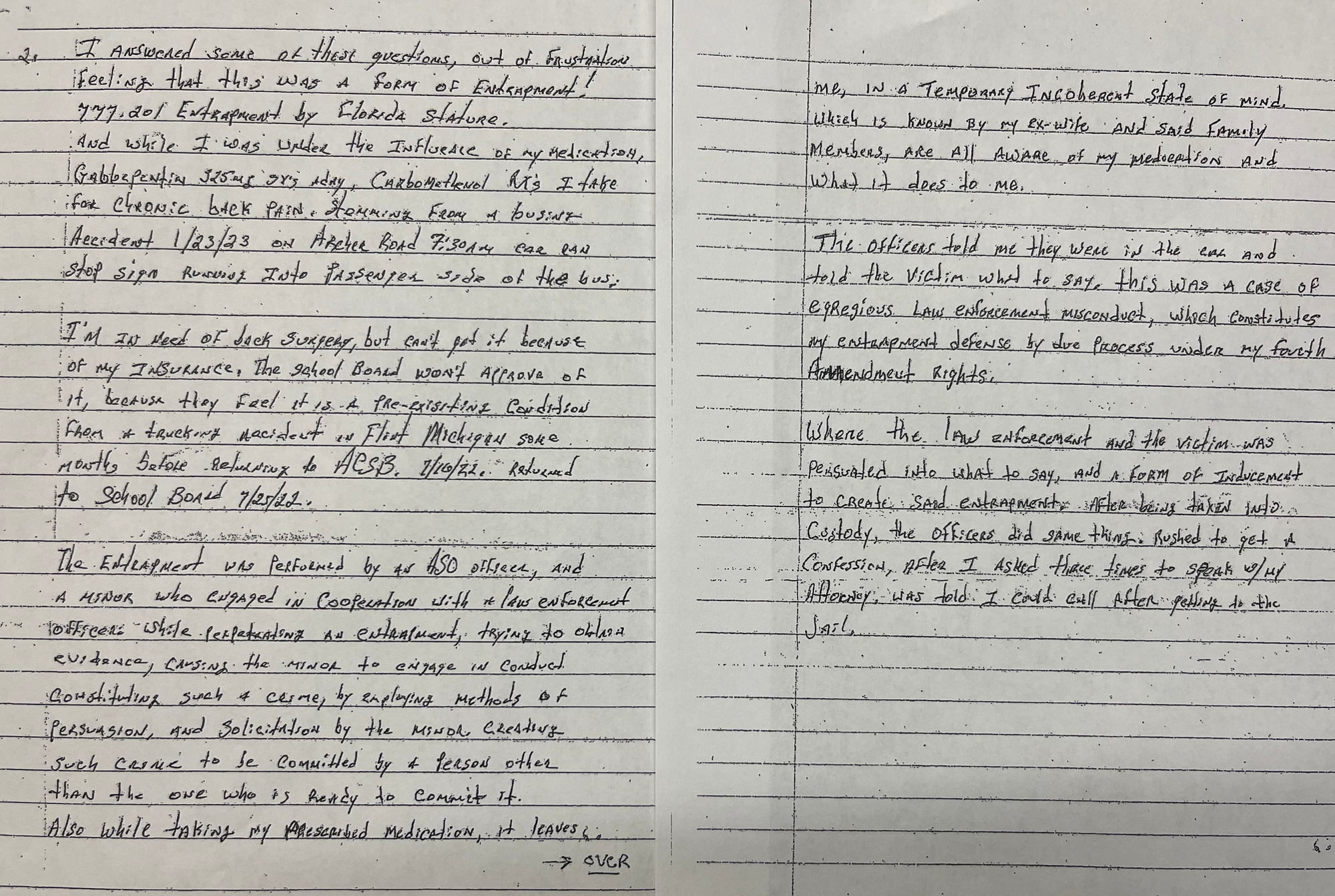 In a letter Lawrence wrote to the judge, he said, "While taking my prescribed medication, it leaves me in a temporary incoherent state of mind, which is known by my ex-wife and said family members are all aware of my medication and what it does to me."