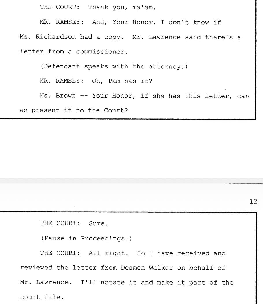 Even after the victim’s testimony was delivered in court, individuals still defended Lawrence. Ms. Hamilton (first name unclear) claimed he was a “pillar of the community,” calling him a “churchgoing person” who “sings in the choir.” She asked Colaw for "leniency" and referred to Lawrence as an “outstanding man.”