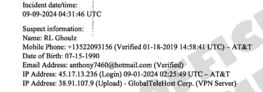 On September 23, 2024, Ridge received a response from AT&T for a subpoena he issued for the suspect’s information.