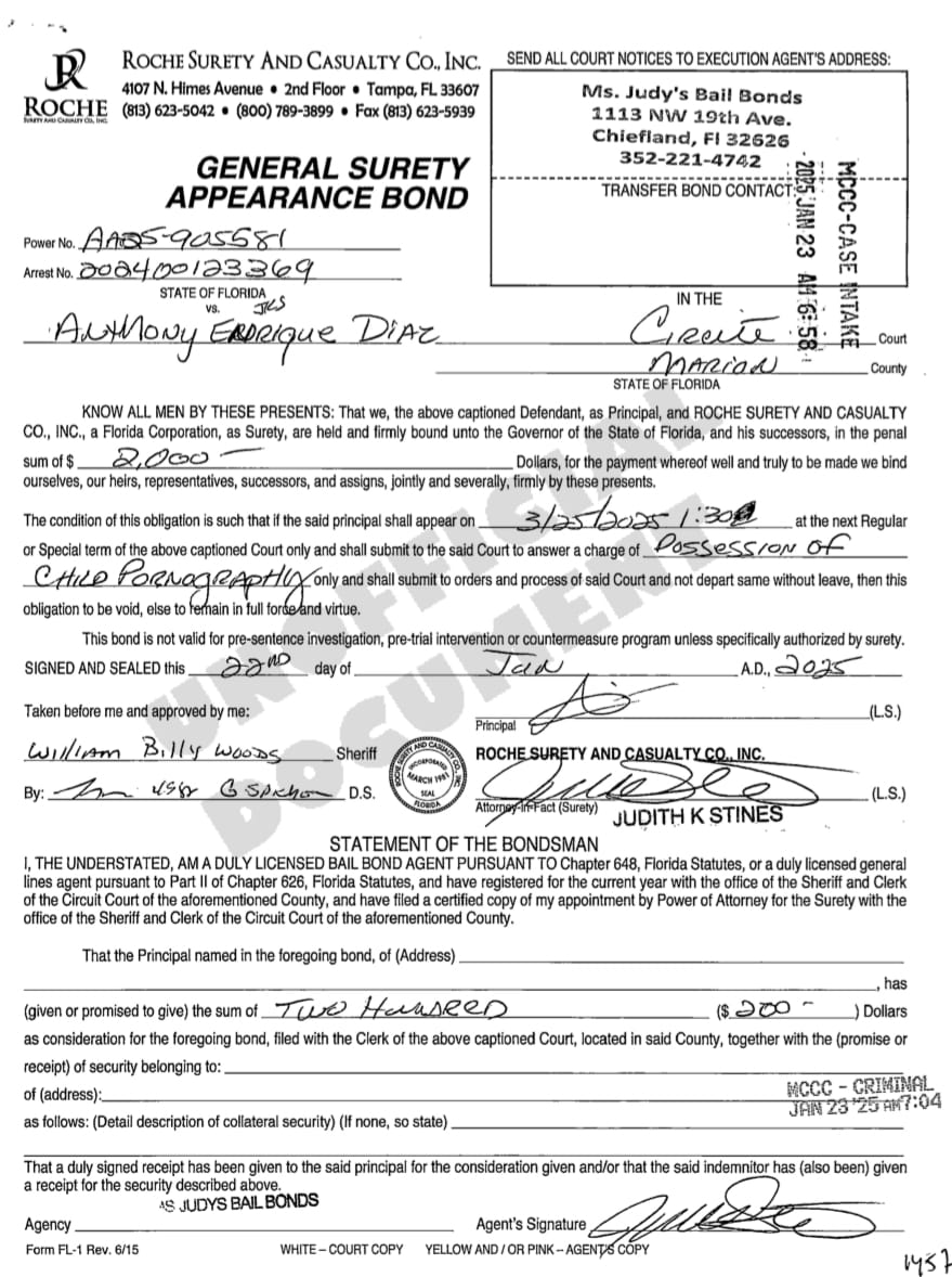 On January 22, 2025, Diaz was released from the Marion County Jail after posting a $40,000 bond, court records show.