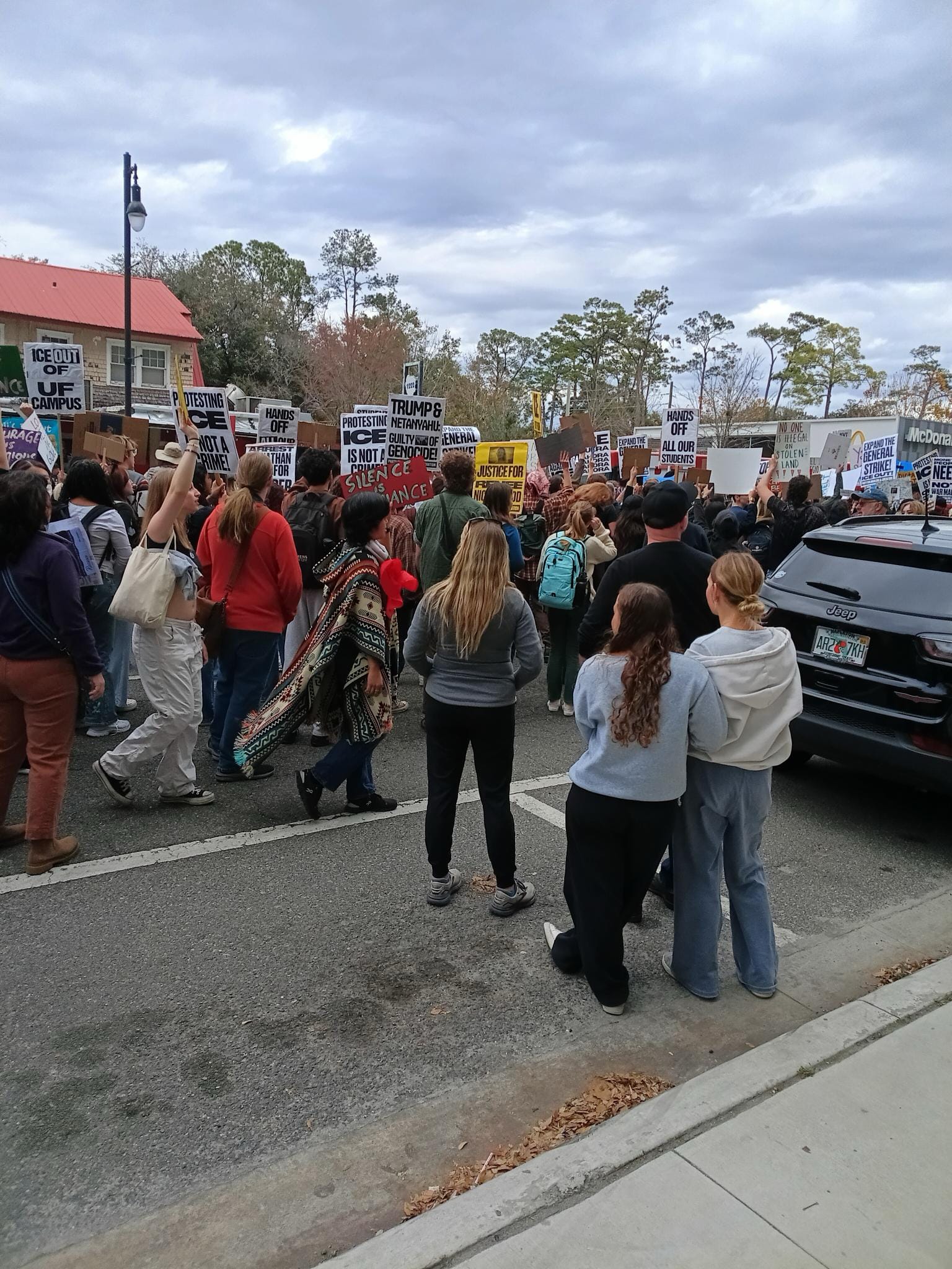 Over 300 people gathered on Friday, January 30, in the largest anti-U.S. Immigration and Customs Enforcement (ICE) protest in Gainesville history. This was in support of the US General Strike and to protest ICE murders.