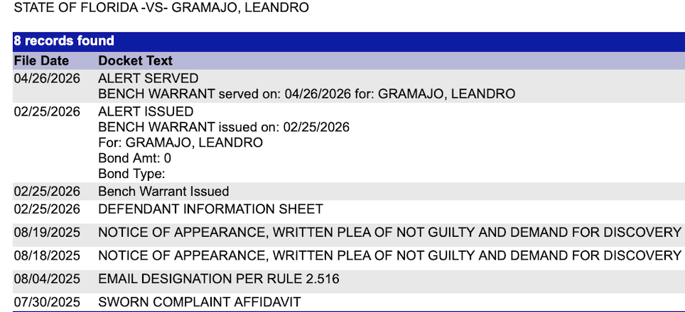 Court records show the case has been pending for nearly a year. Gramajo reportedly committed the offense in June 2025. A warrant for Gramajo’s arrest was issued in February but it wasn’t served until today.